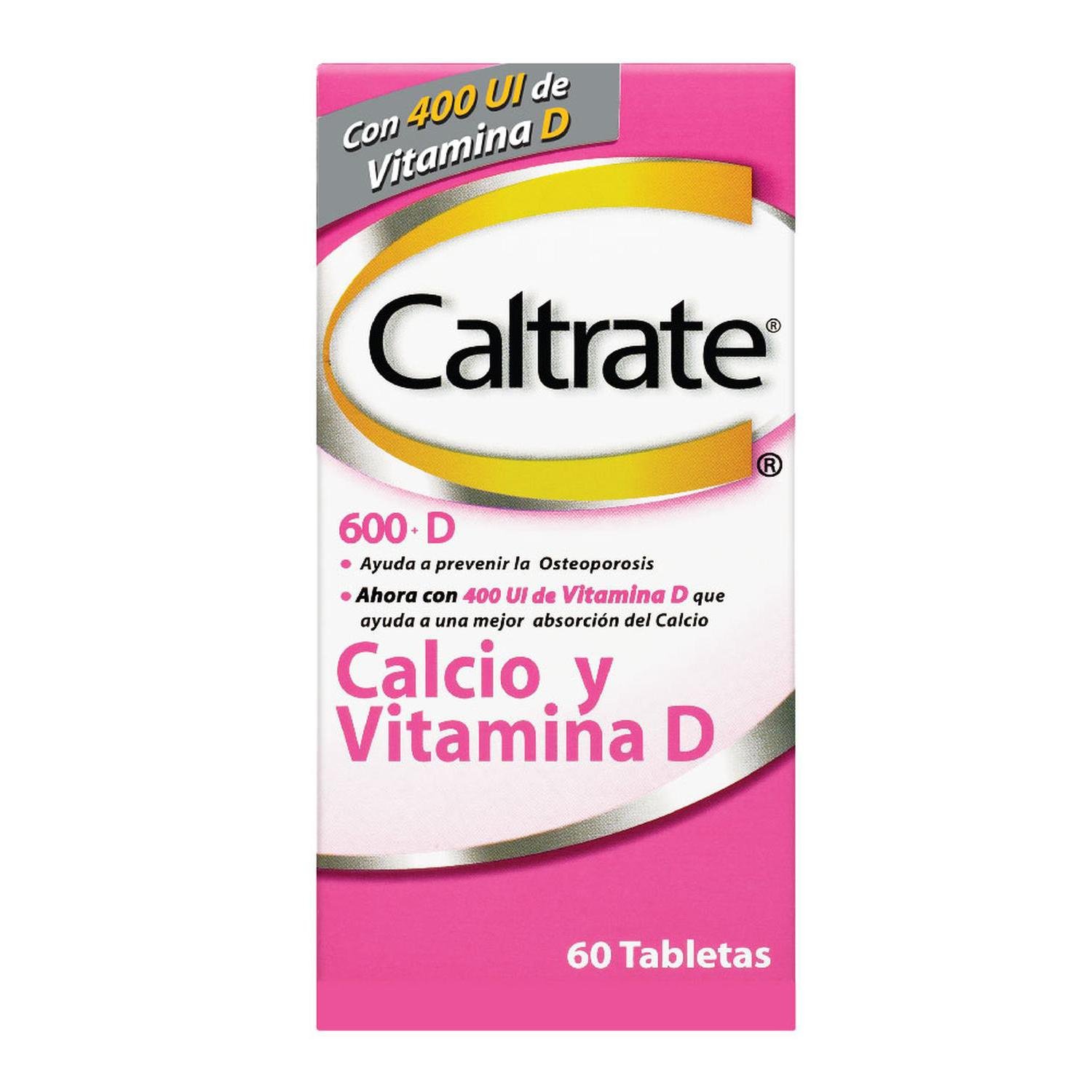 Caltrate Caltrate 600 + D CON 400 UI de Vitamina D, ayuda a prevenir la Osteoporosis x 60 Tabletas Es un medicamento. No exceder su consumo. Leer indicaciones y contraindicaciones. Si los síntomas persisten consulte a su médico. CALTRATE 600 + D INVIMA 2012M-0013771. COADYUVANTE EN EL MANEJO PREVENTIVO DE DEFICIENCIAS ORGÁNICAS DE CALCIO Y VITAMINA D, PREVENCIÓN Y TRATAMIENTO DE LA OSTEOPOROSIS.