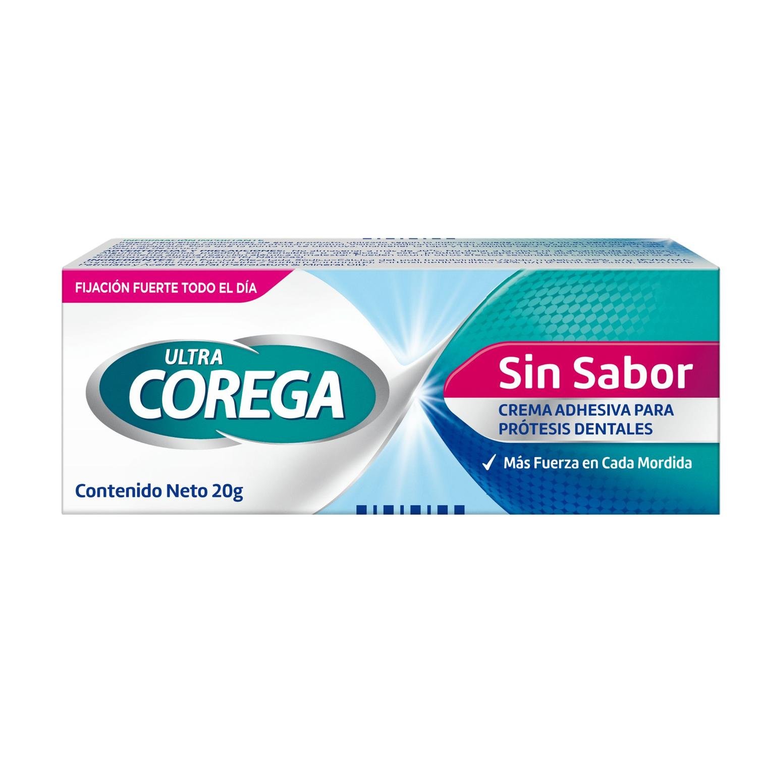 Corega Crema Adhesiva para Prótesis Dental sin Sabor 20 gr, Fórmula ULTRA ADHESIVA que fija prótesis hasta por 12 horas.