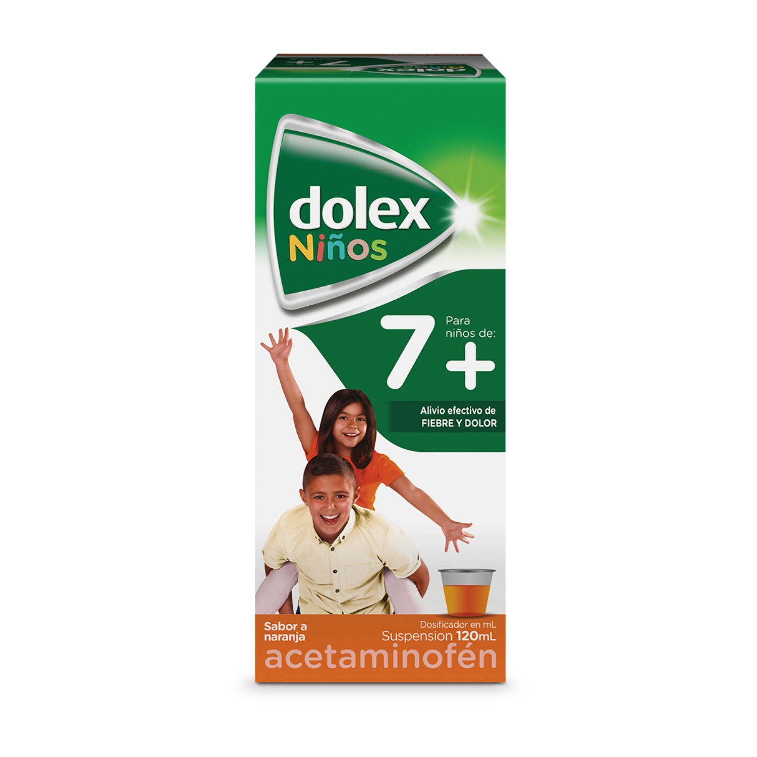 Dolex Niños Acetaminofen Alivio de la fiebre y el dolor Suspensión 7+ 120 ml