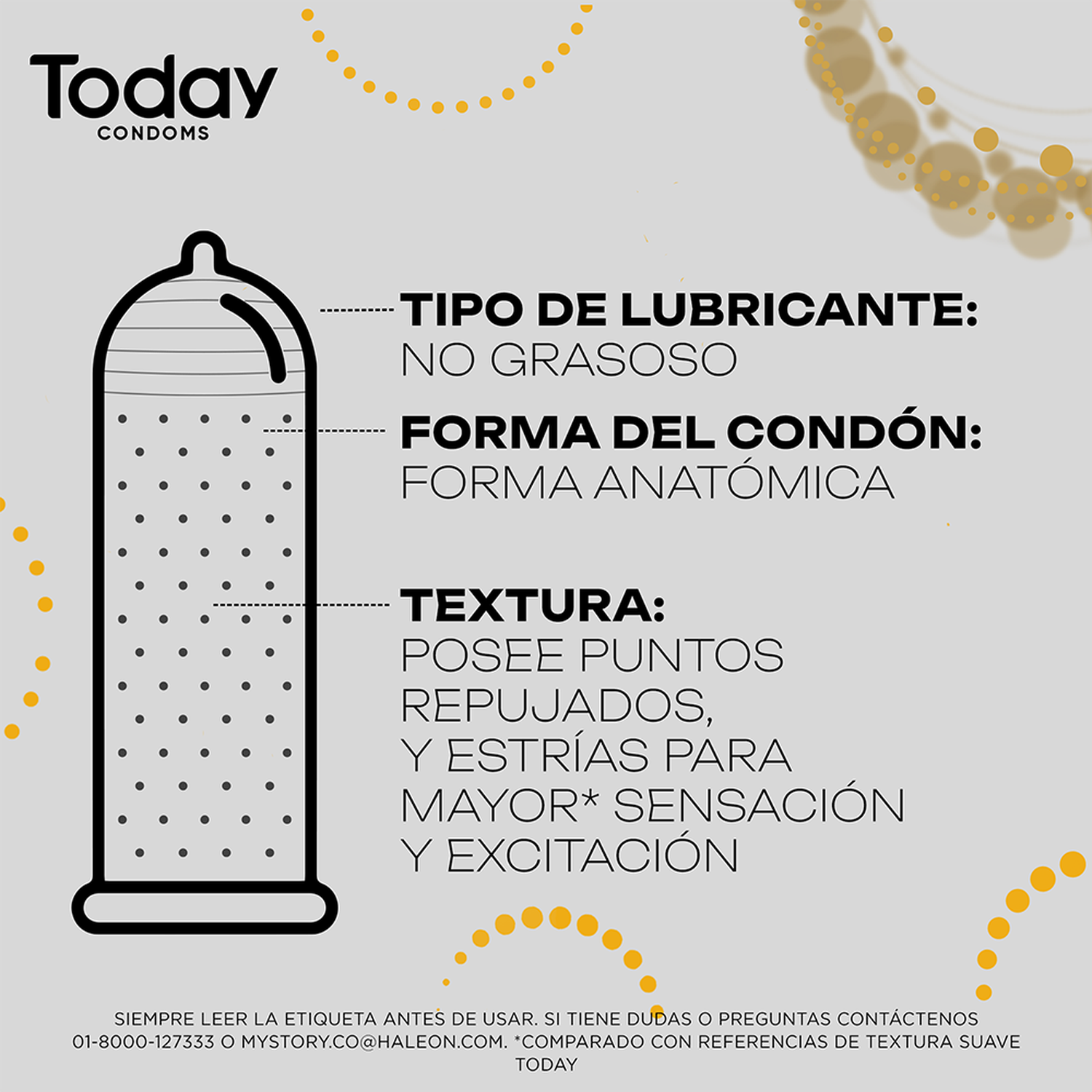 Posee puntos repujados, estrías y una forma anatómica para mayor* sensación y excitación. Comparado con referencias de textura suave de Today.
