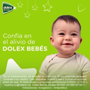 Dolex Bebés Acetaminofen Alivio de la fiebre y el dolor Jarabe 1-24 meses 60 ml cantidad